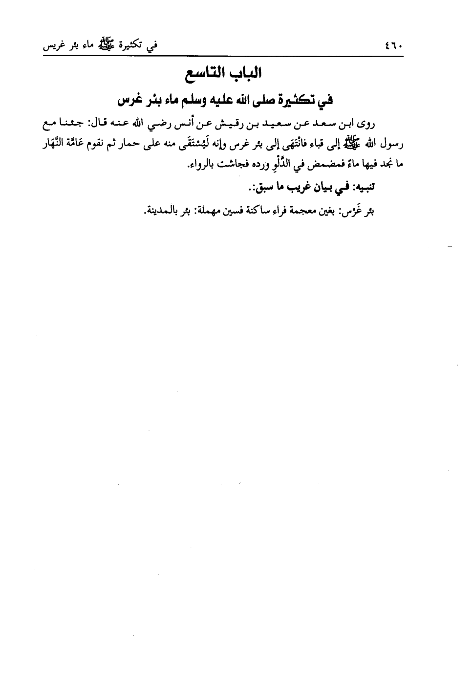 الباب التاسع في تكثيره صلى الله عليه وسلّم ماء بئر غرس