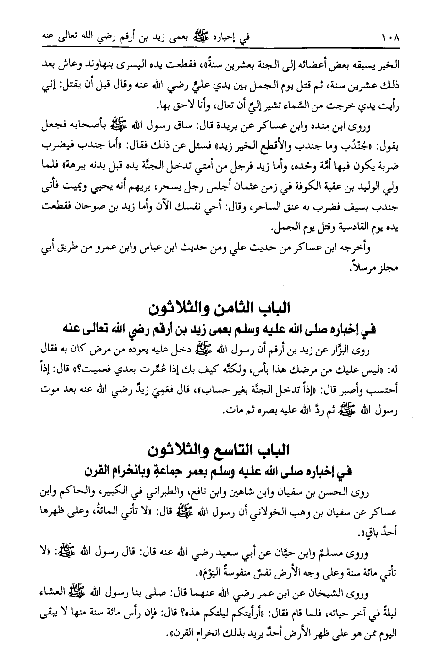 الباب الثامن والثلاثون في إخباره صلى الله عليه وسلم بعمى زيد بن أرقم رضي الله تعالى عنه