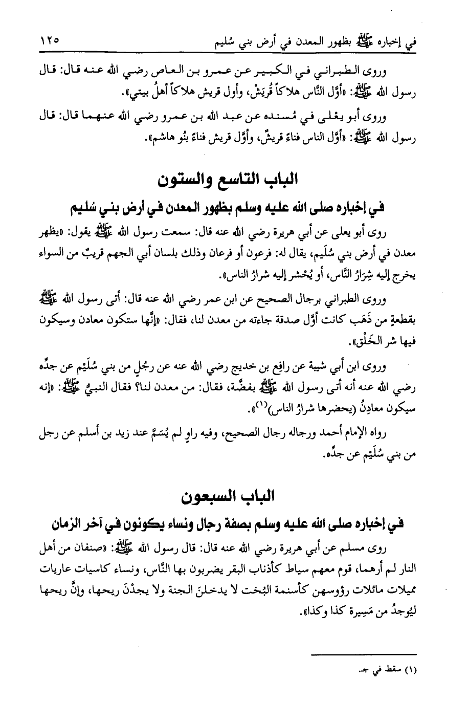 الباب التاسع والستون في إخباره صلى الله عليه وسلم بظهور المعدن في أرض بني سليم