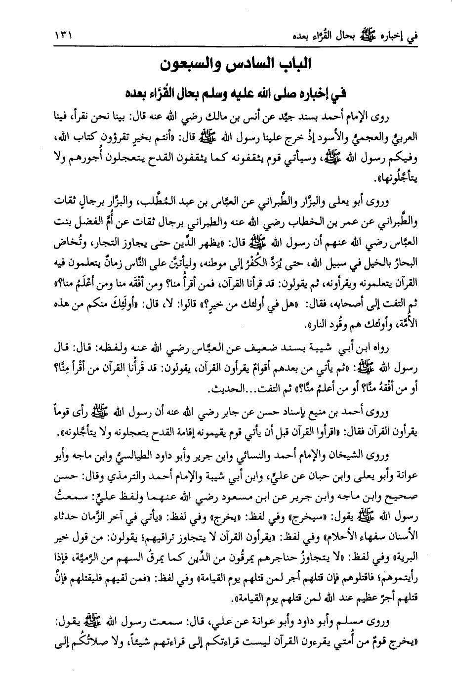 الباب السادس والسبعون في إخباره صلى الله عليه وسلم بحال القراء بعده