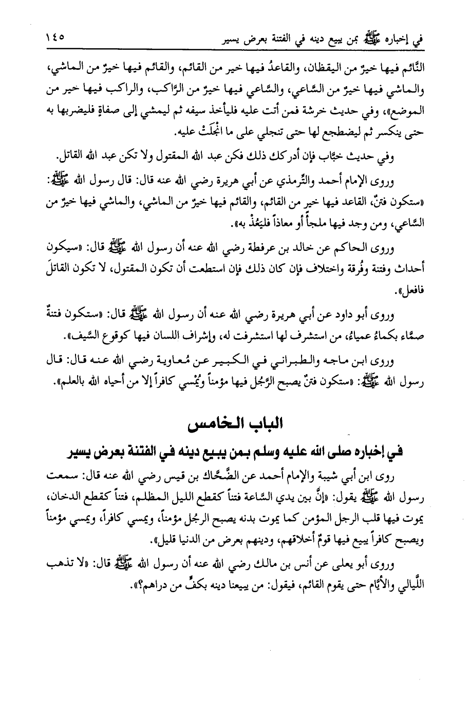 الباب الخامس في إخباره صلى الله عليه وسلم بمن يبيع دينه في الفتنة بعرض يسير