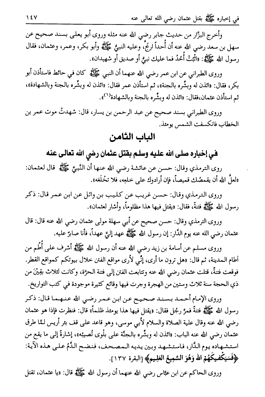 الباب الثامن في إخباره صلى الله عليه وسلم بقتل عثمان رضي الله تعالى عنه