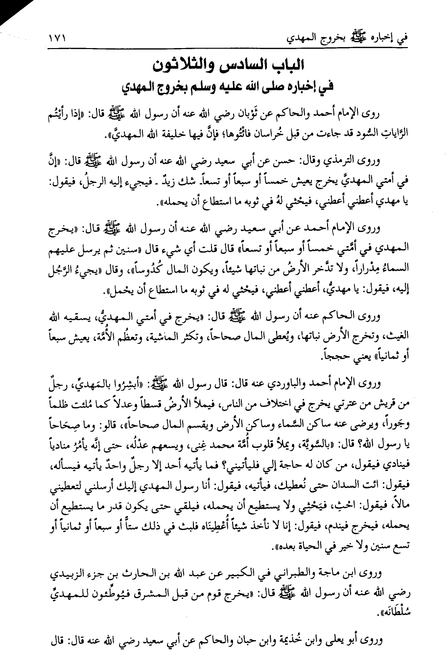 الباب السادس والثلاثون في إخباره صلى الله عليه وسلم بخروج المهدي