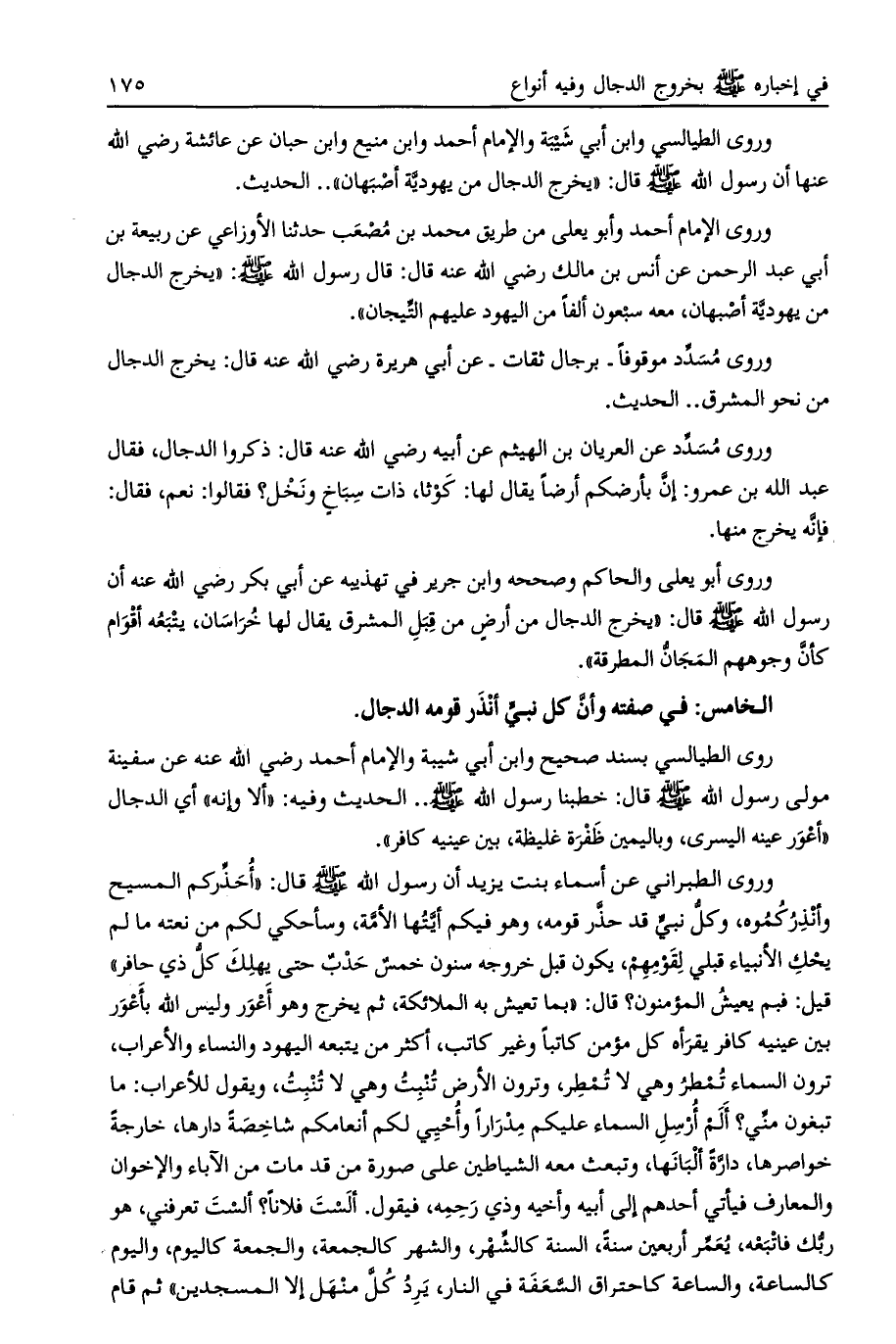 الخامس: في صفته وأن كل نبي أنذر قومه الدجال.