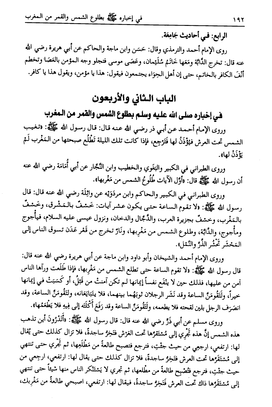 الباب الثاني والأربعون في إخباره صلى الله عليه وسلم بطلوع الشمس والقمر من المغرب