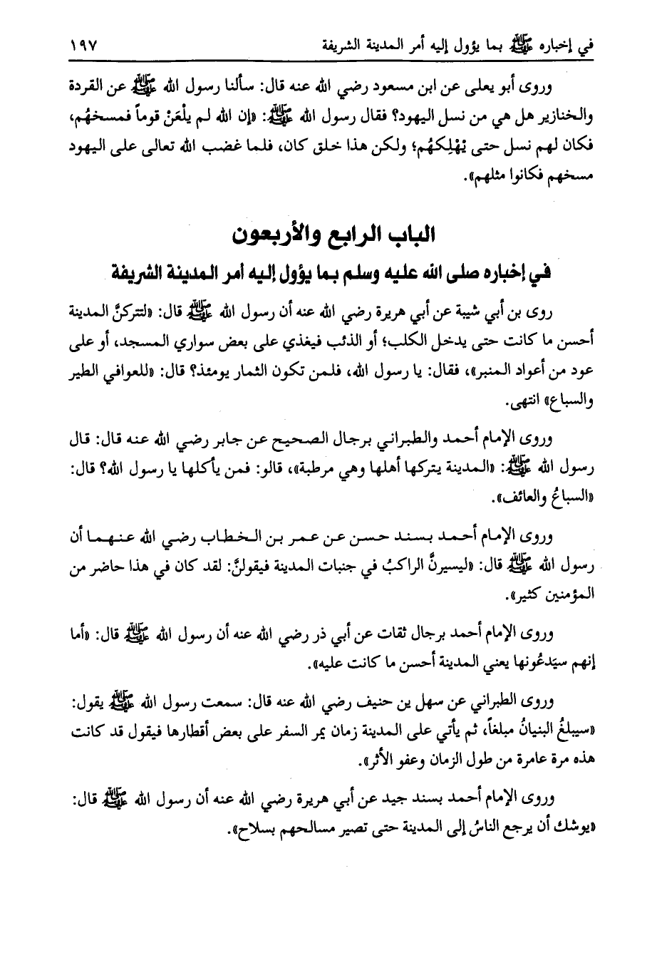 الباب الرابع والأربعون في إخباره صلى الله عليه وسلم بما يؤول إليه أمر المدينة الشريفة