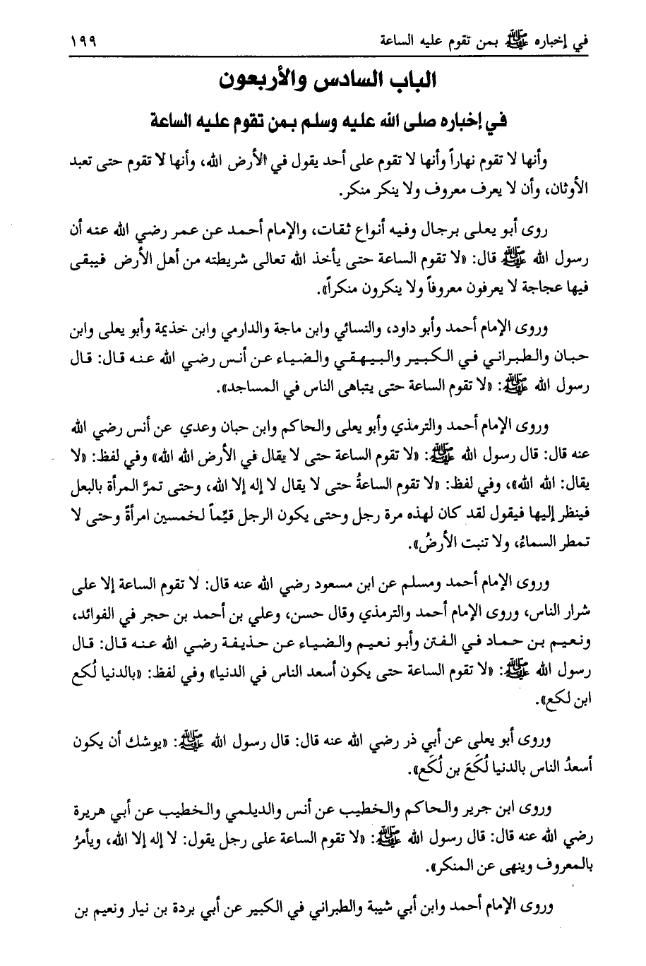 الباب السادس والأربعون في إخباره صلى الله عليه وسلم بمن تقوم عليه الساعة