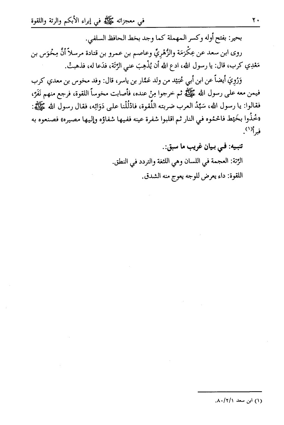 [ (1) ] ابن سعد 1/ 2/ 80.