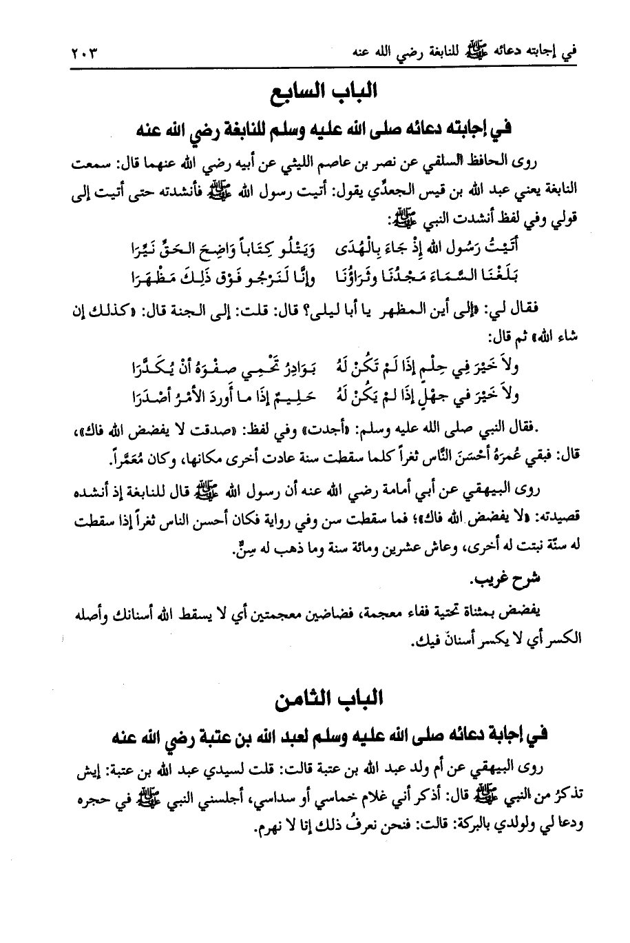 الباب السابع في إجابته دعائه صلى الله عليه وسلم للنابغة رضي الله عنه