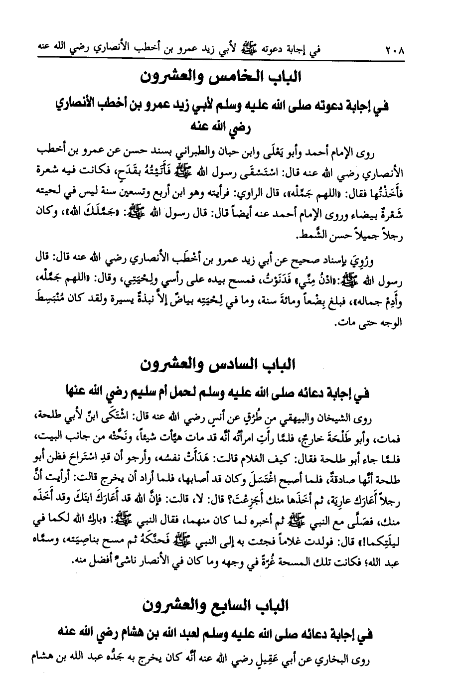 الباب الخامس والعشرون في إجابة دعوته صلى الله عليه وسلم لأبي زيد عمرو بن أخطب الأنصاري رضي الله عنه