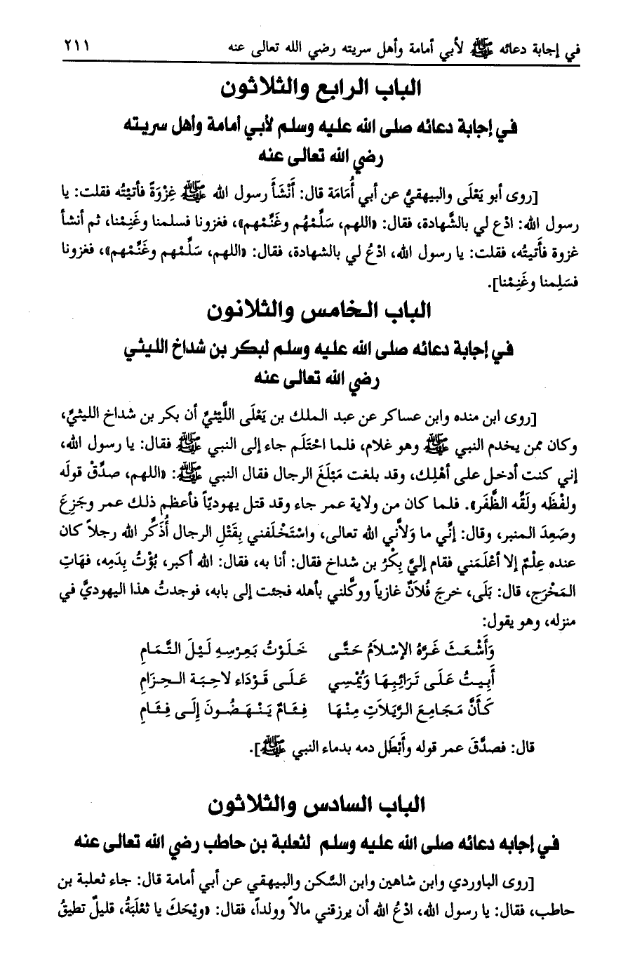 الباب الخامس والثلاثون في إجابة دعائه صلى الله عليه وسلم لبكر بن شداخ الليثي رضي الله تعالى عنه