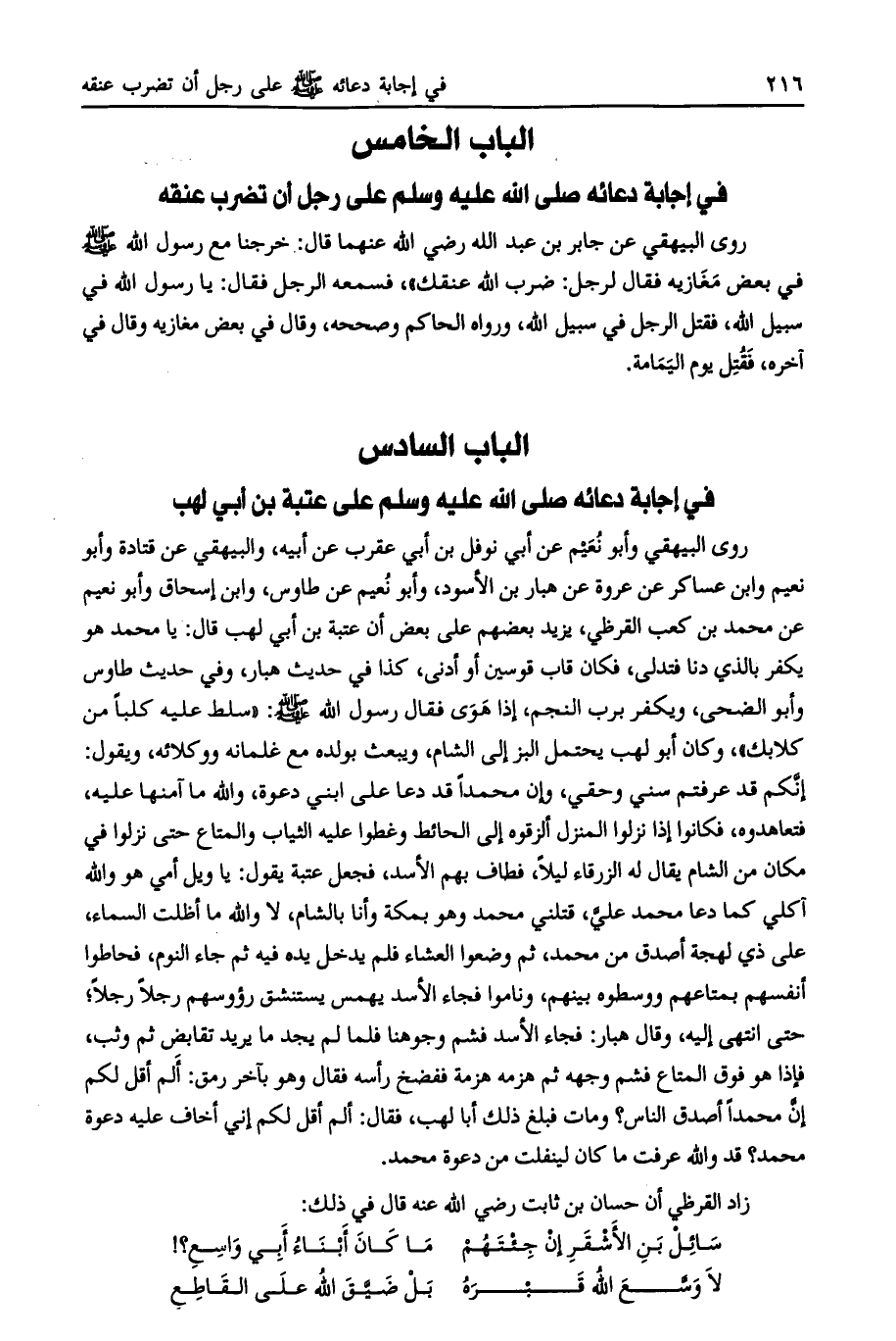 الباب الخامس في إجابة دعائه صلى الله عليه وسلم على رجل أن تضرب عنقه