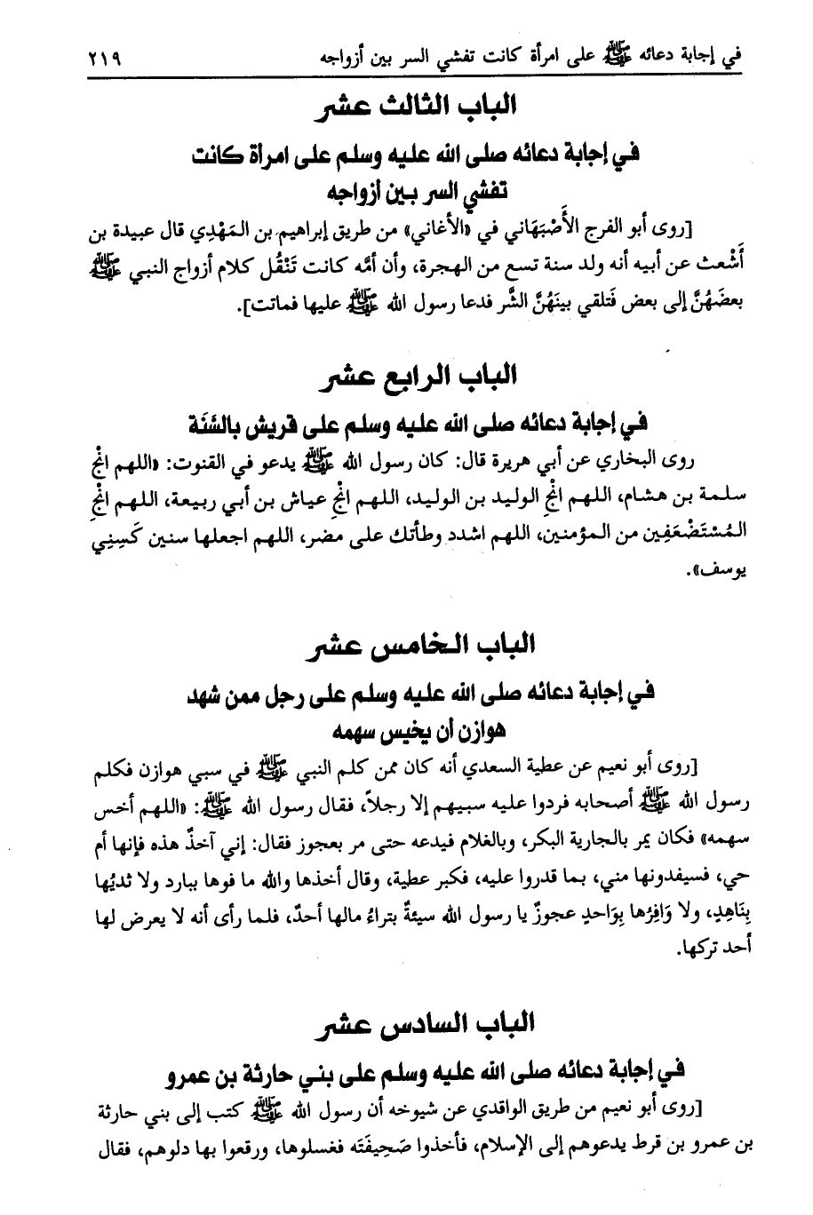 الباب الثالث عشر في إجابة دعائه صلى الله عليه وسلم على امرأة كانت تفشي السر بين أزواجه