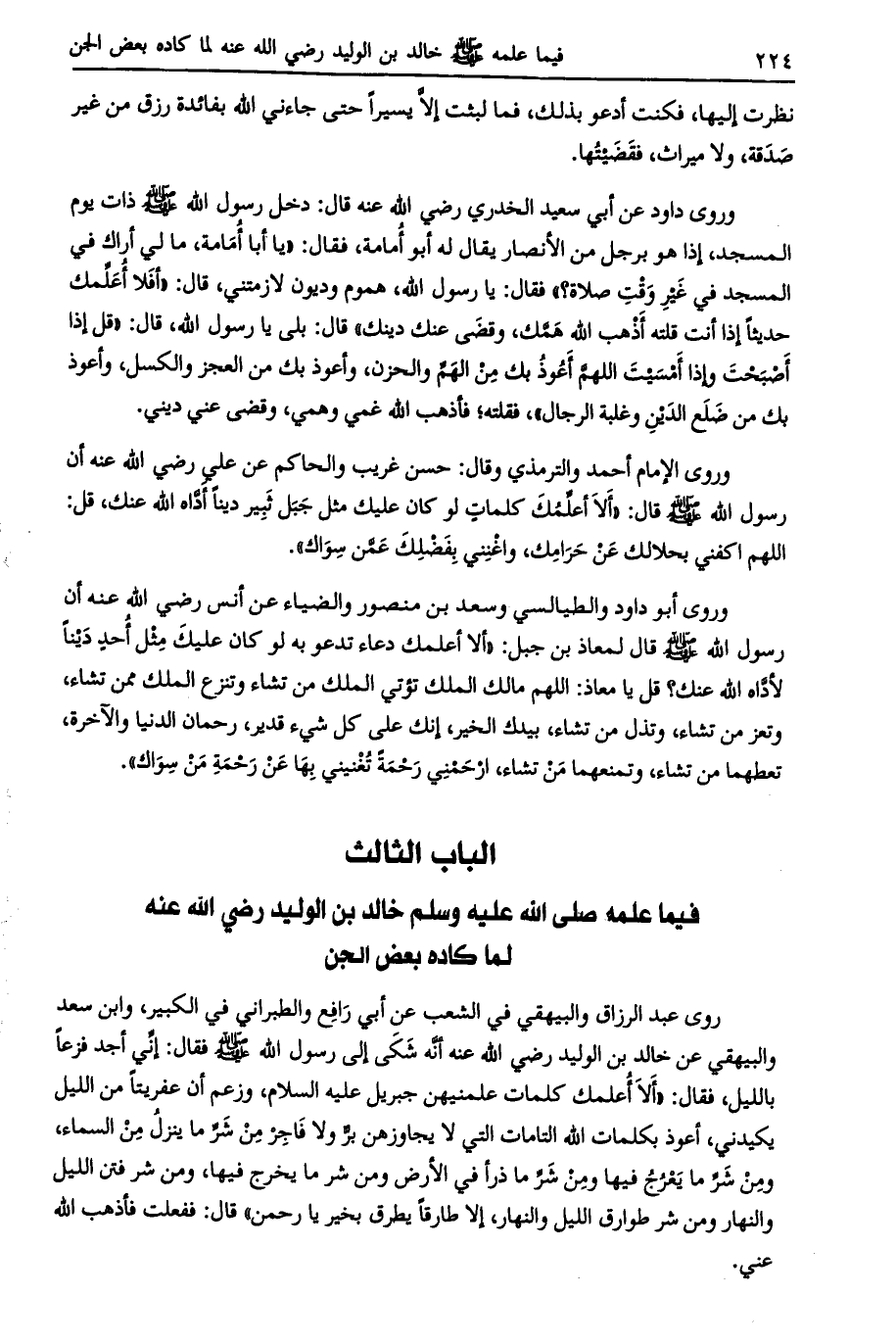 الباب الثالث فيما علمه صلى الله عليه وسلم خالد بن الوليد رضي الله عنه لما كاده بعض الجن