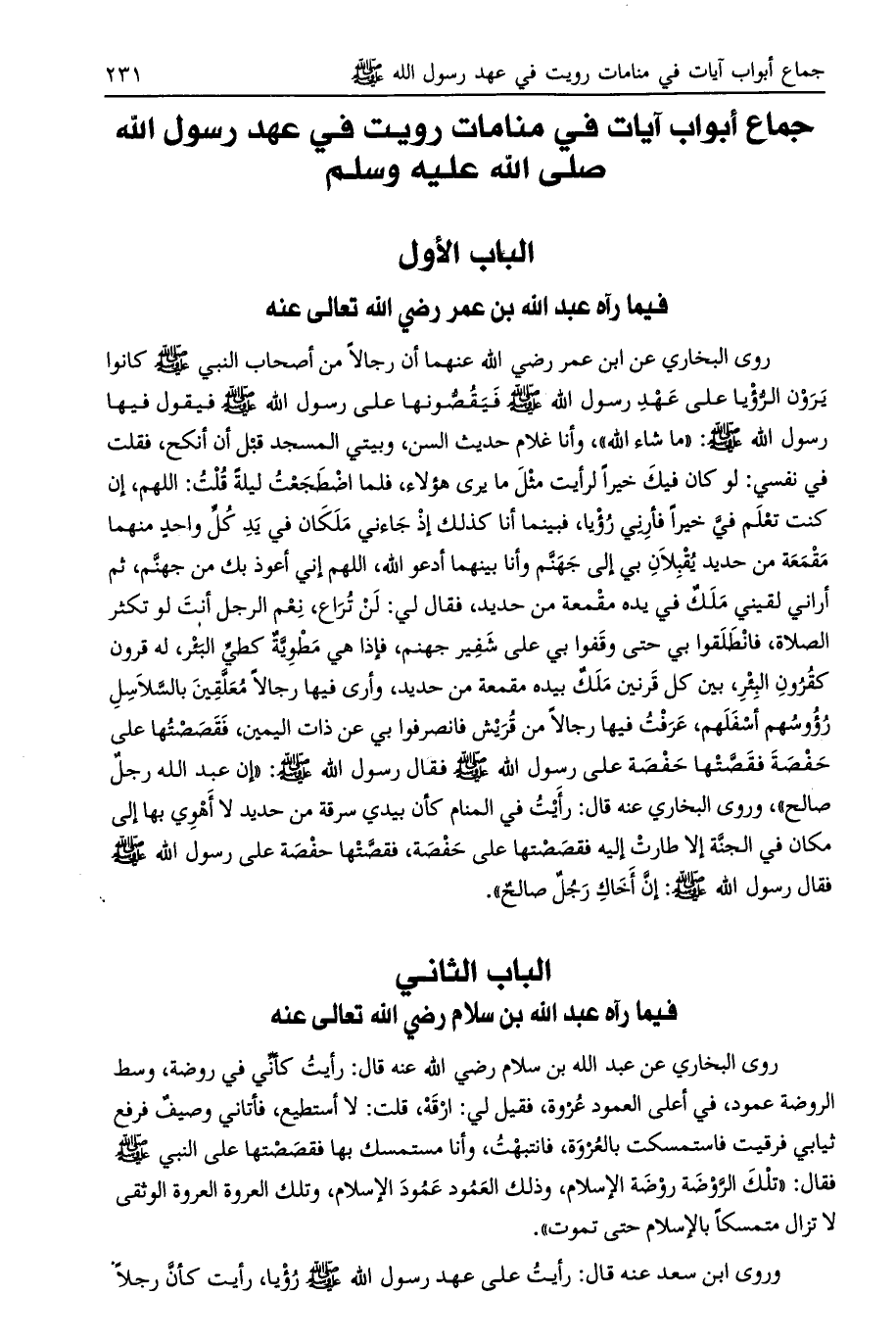 الباب الأول فيما رآه عبد الله بن عمر رضي الله تعالى عنه