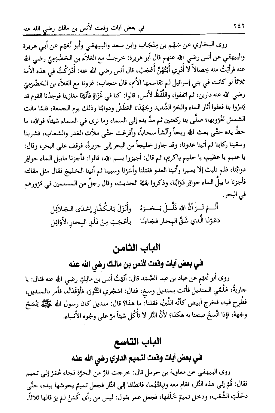 الباب الثامن في بعض آيات وقعت لأنس بن مالك رضي الله عنه