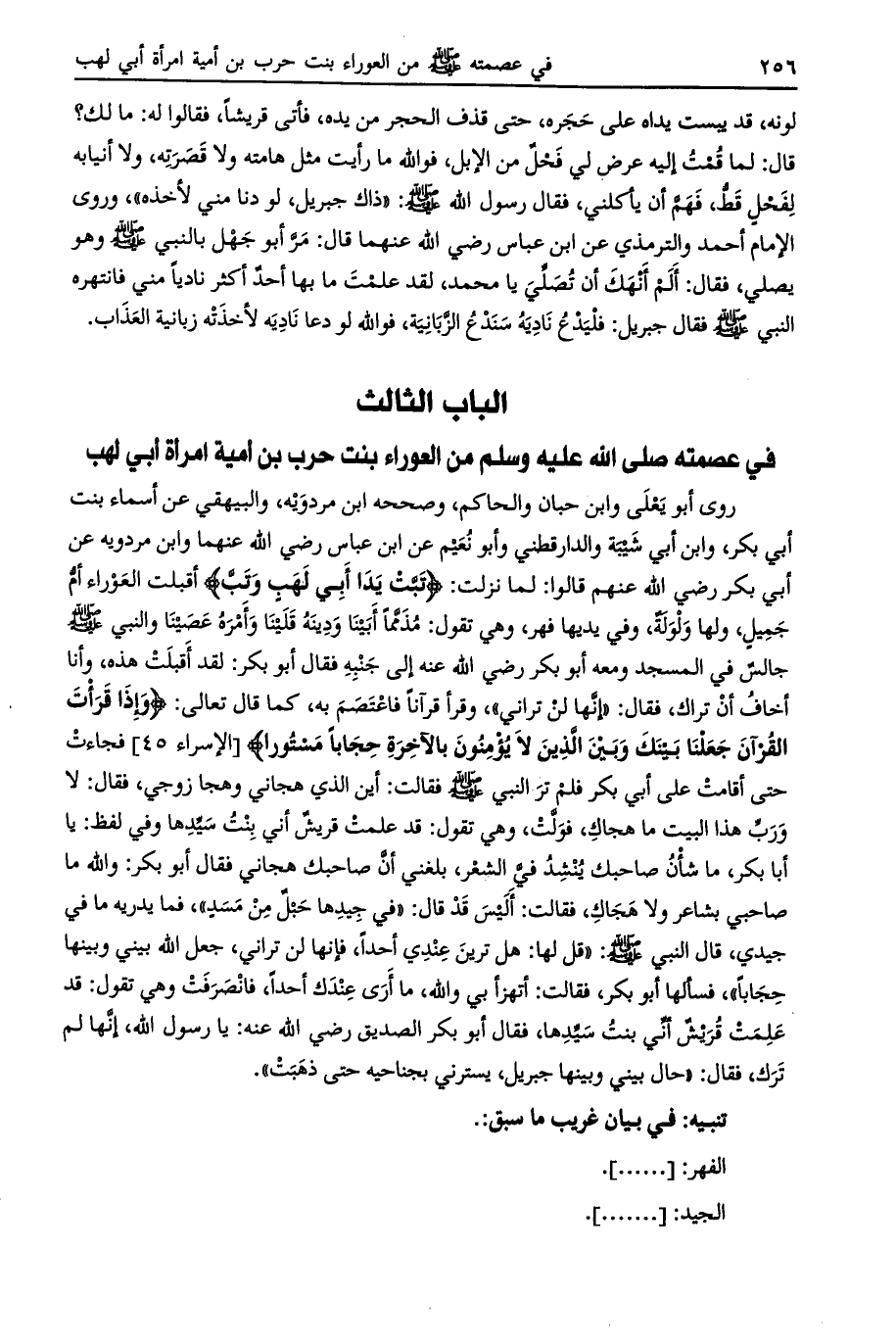 الباب الثالث في عصمته صلى الله عليه وسلم من العوراء بنت حرب بن أمية امرأة أبي لهب
