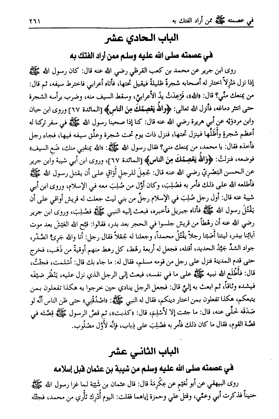 الباب الحادي عشر في عصمته صلى الله عليه وسلم ممن أراد الفتك به