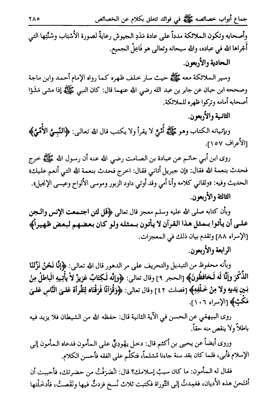 وبإتيانه الكتاب وهو صلى الله عليه وسلم أمي لا يقرأ ولا يكتب قال الله تعالى: النَّبِيَّ الْأُمِّيَّ [الأعراف 157] .