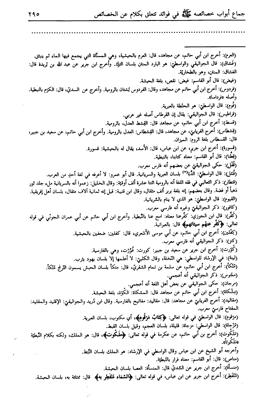(قسط) : أخرج ابن أبي حاتم، عن مجاهد قال: القسط العدل، بالرومية.