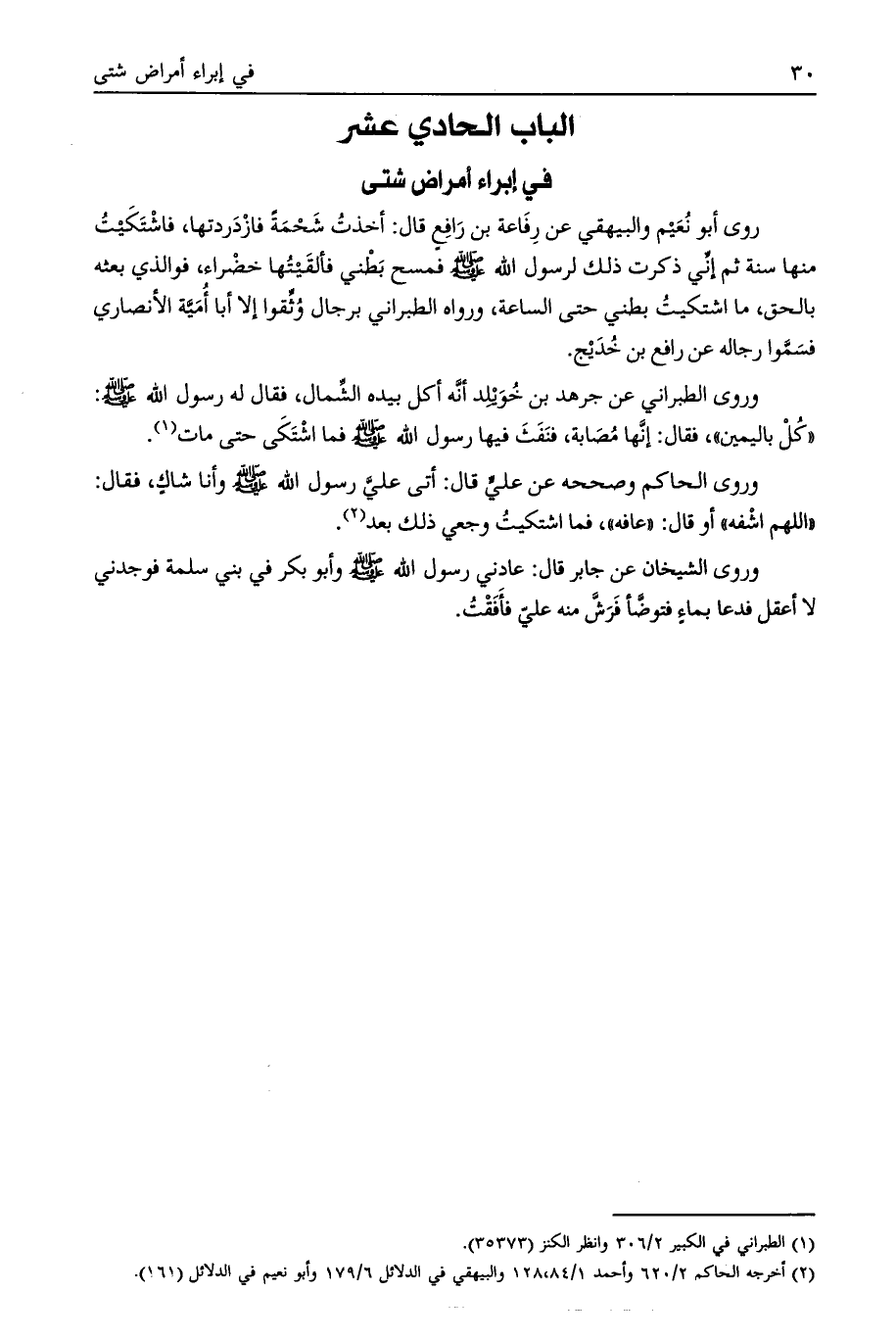 وروى الحاكم وصححه عن علي قال: أتى على رسول الله صلى الله عليه وسلم وأنا شاك، فقال: