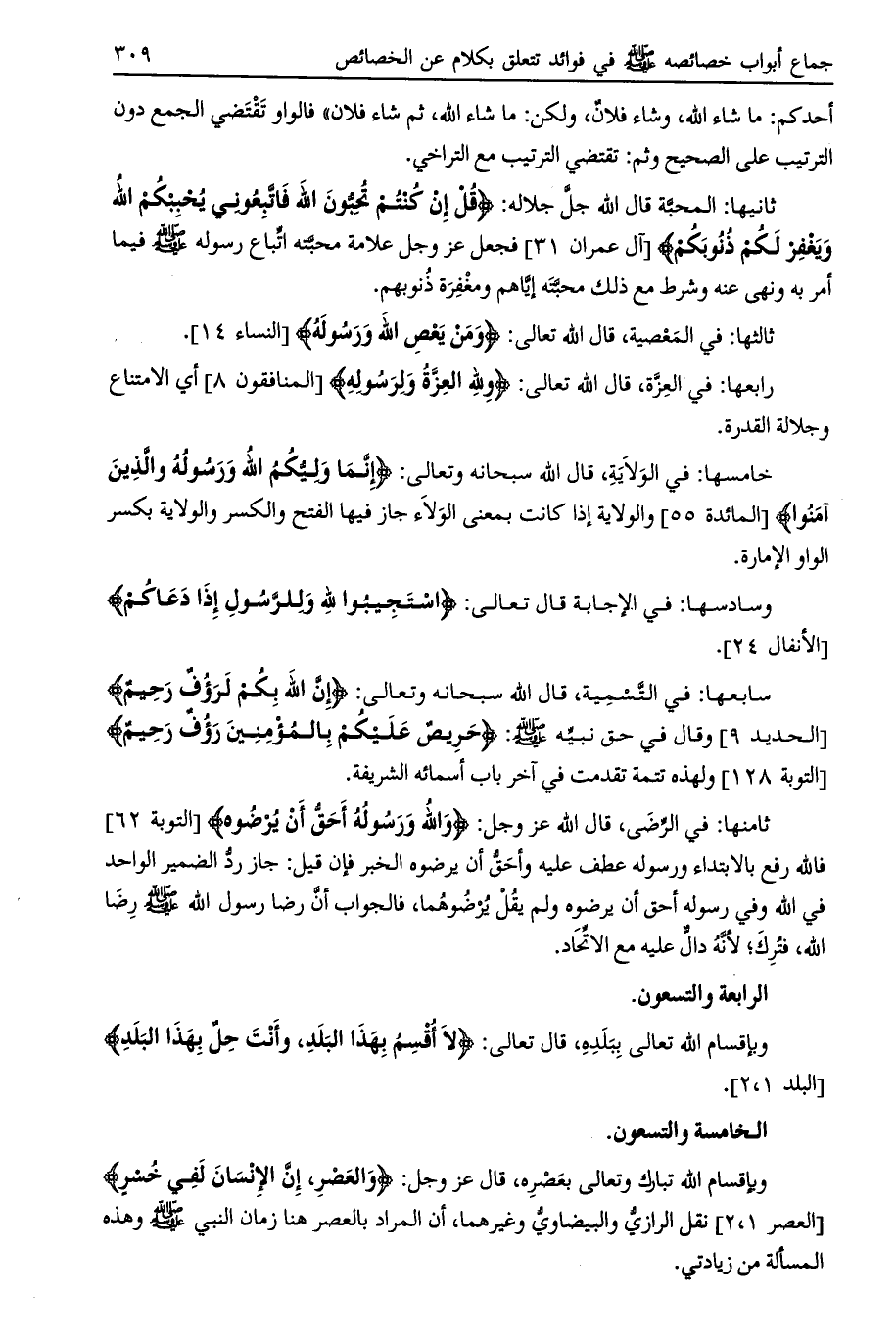 وبإقسام الله تبارك وتعالى بعصره، قال عز وجل: وَالْعَصْرِ، إِنَّ الْإِنْسانَ لَفِي خُسْرٍ [العصر 1، 2] نقل الرازي والبيضاوي وغيرهما، أن المراد بالعصر هنا زمان النبي صلى الله عليه وسلم وهذه المسألة من زيادتي.