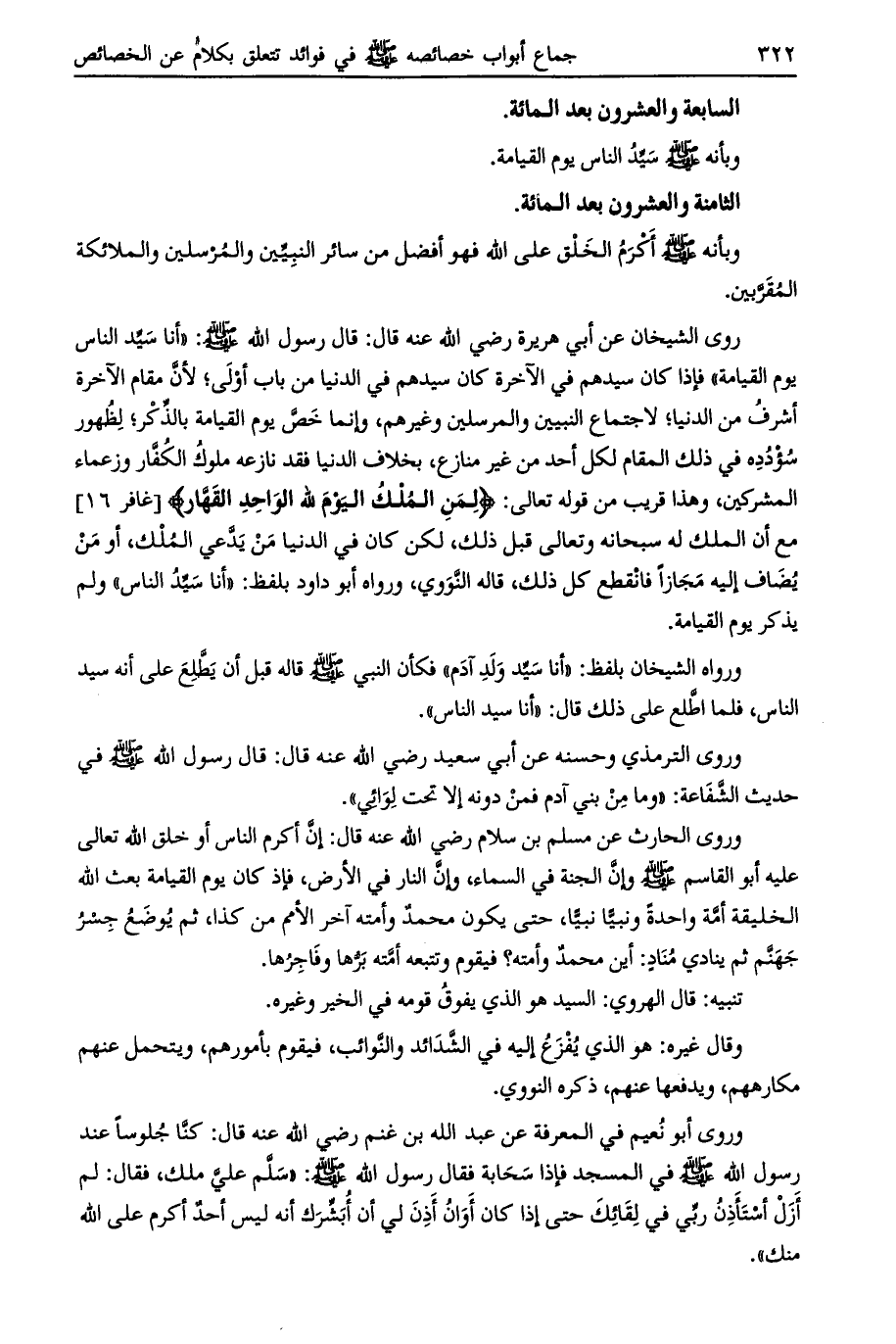 روى الشيخان عن أبي هريرة رضي الله عنه قال: قال رسول الله صلى الله عليه وسلم: «أنا سيد الناس يوم القيامة»