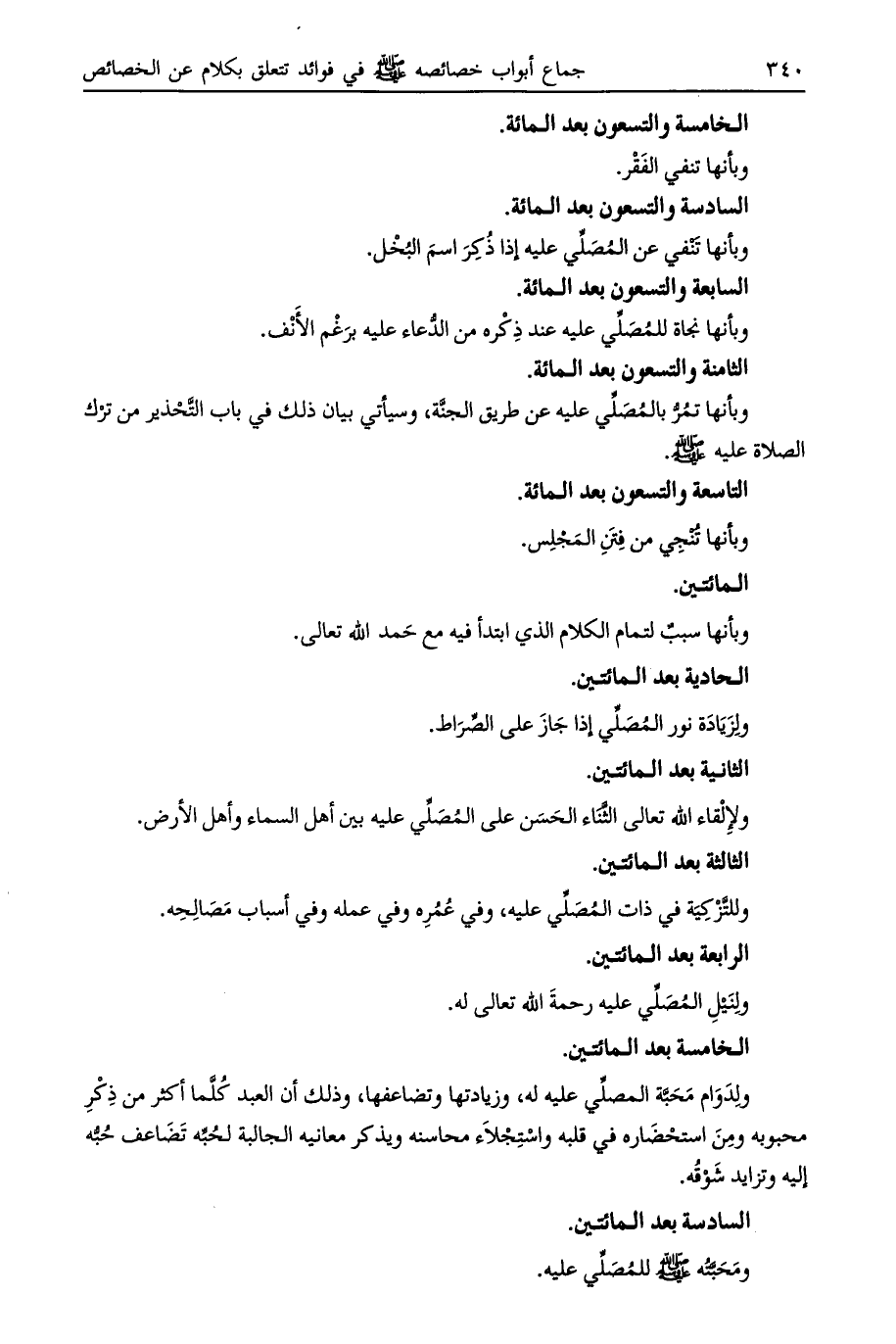 وبأنها تمر بالمصلي عليه عن طريق الجنة، وسيأتي بيان ذلك في باب التحذير من ترك الصلاة عليه صلى الله عليه وسلم.