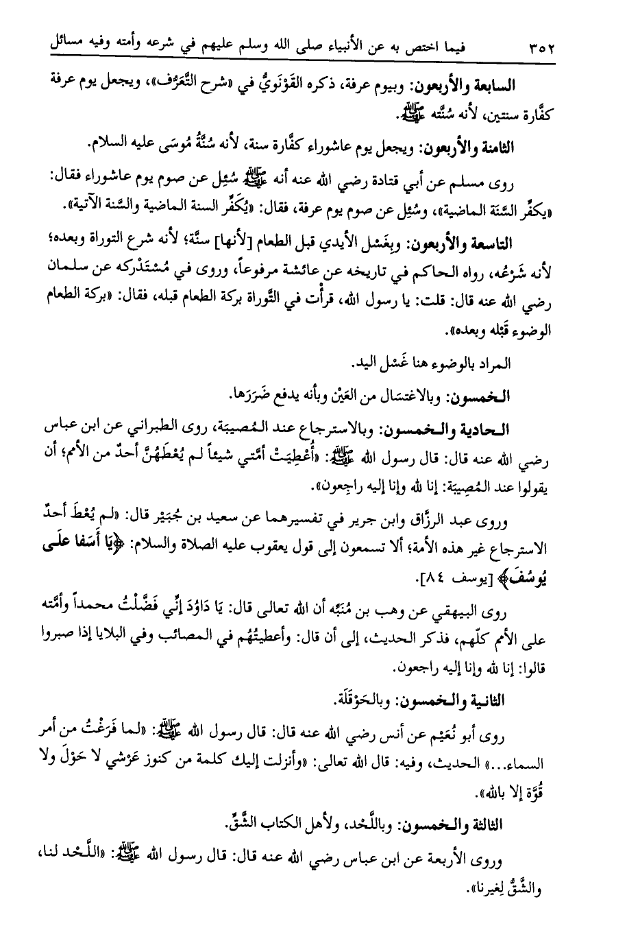 وروى عبد الرزاق وابن جرير في تفسيرهما عن سعيد بن جبير قال: «لم يعط أحد الاسترجاع غير هذه الأمة، إلا تسمعون إلى قول يعقوب عليه الصلاة والسلام: يا أَسَفى عَلى يُوسُفَ [يوسف 84] .