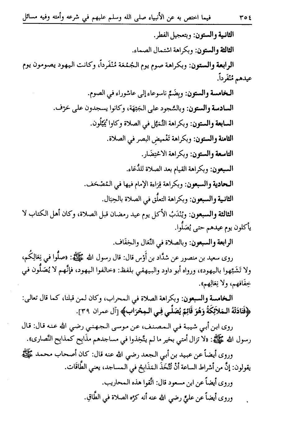 وبكراهة صوم يوم الجمعة منفردا، وكانت اليهود يصومون يوم عيدهم منفردا.