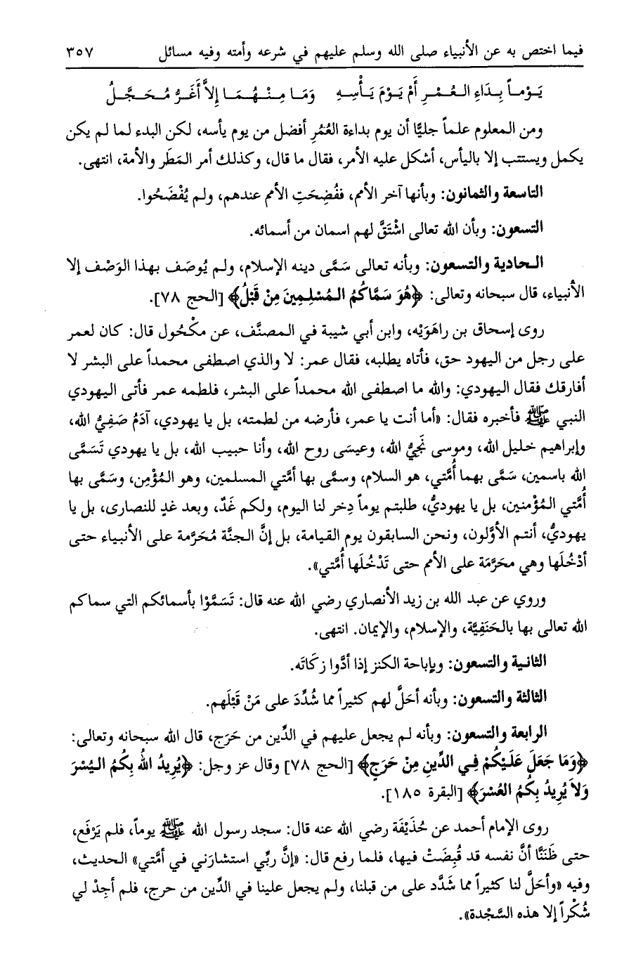 وبأنه تعالى سمى دينه الإسلام، ولم يوصف بهذا الوصف إلا الأنبياء، قال سبحانه وتعالى: هُوَ سَمَّاكُمُ الْمُسْلِمِينَ مِنْ قَبْلُ [الحج 78] .