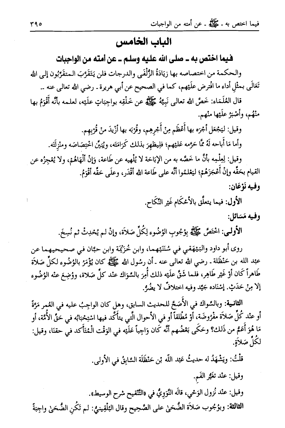 الباب الخامس فيما اختص به- صلى الله عليه وسلم- عن أمته عن الواجبات