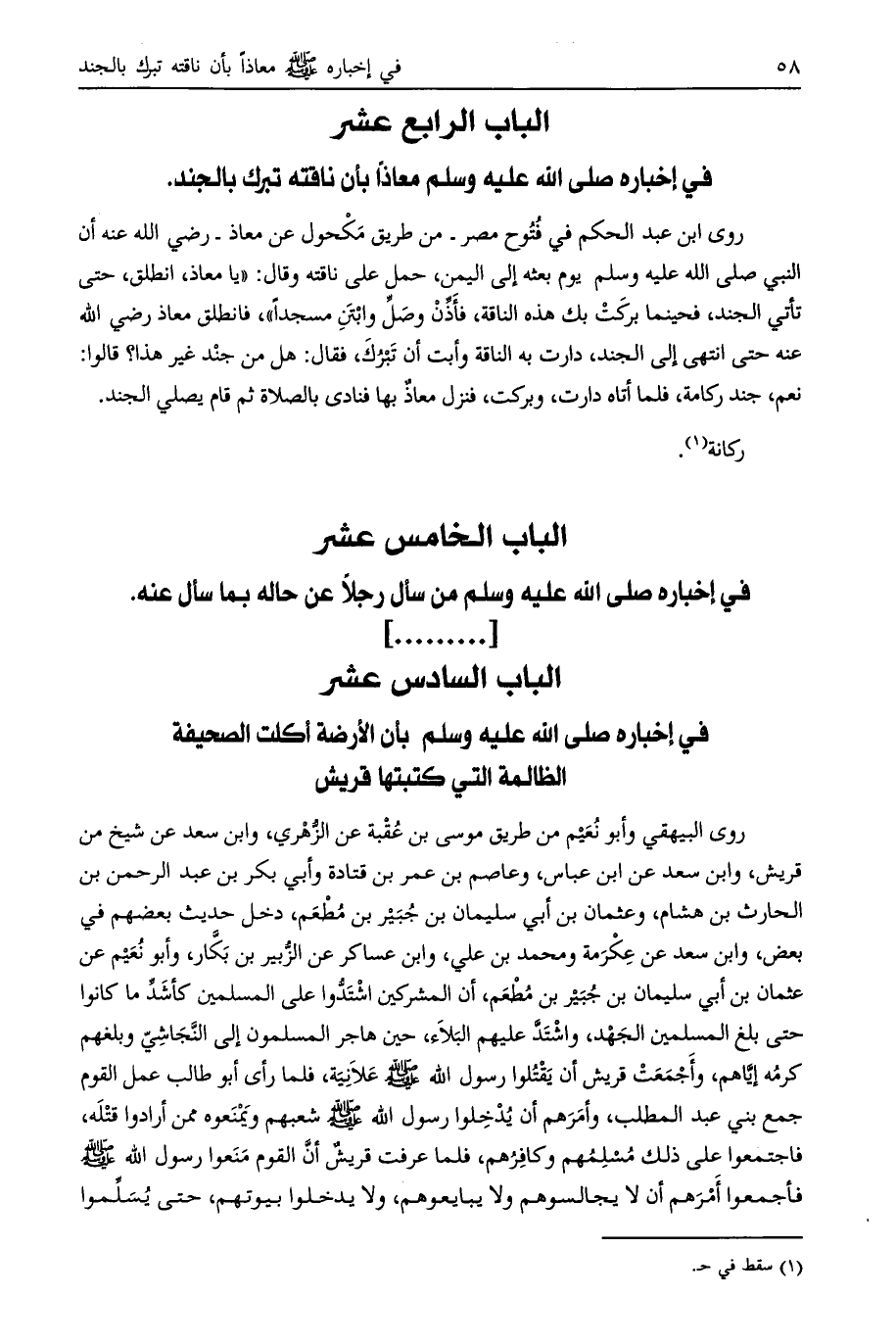 الباب السادس عشر في إخباره صلى الله عليه وسلم بأن الأرضة أكلت الصحيفة الظالمة التي كتبتها قريش