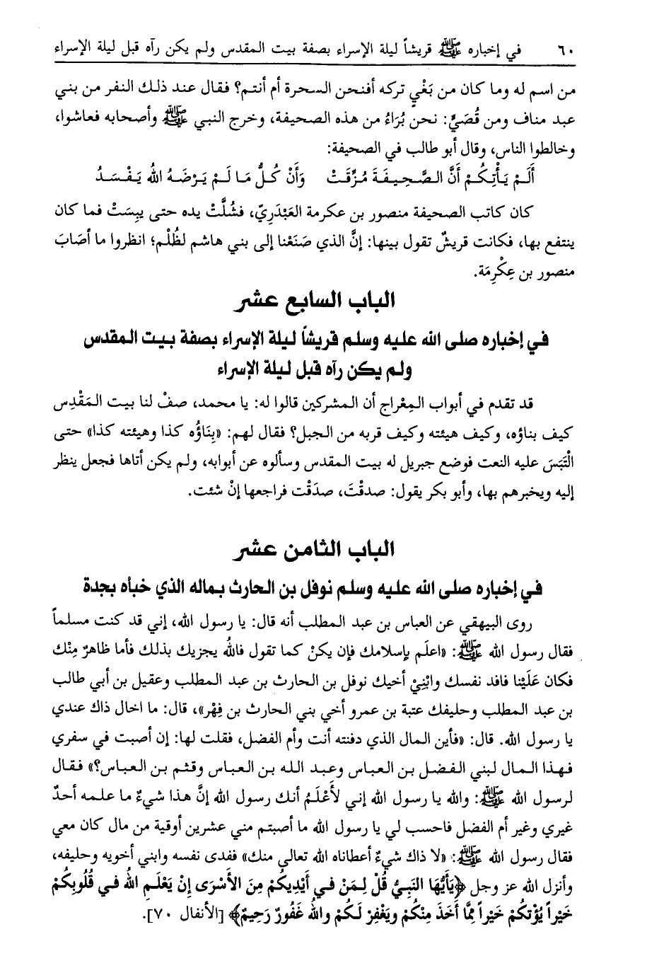 الباب السابع عشر في إخباره صلى الله عليه وسلم قريشا ليلة الإسراء بصفة بيت المقدس ولم يكن رآه قبل ليلة الإسراء