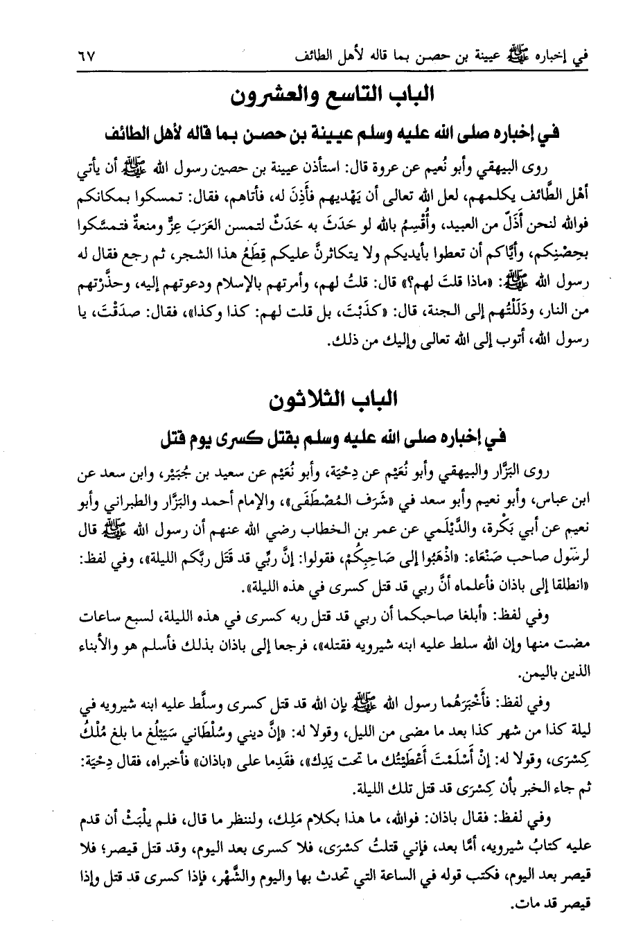 الباب الثلاثون في إخباره صلى الله عليه وسلم بقتل كسرى يوم قتل