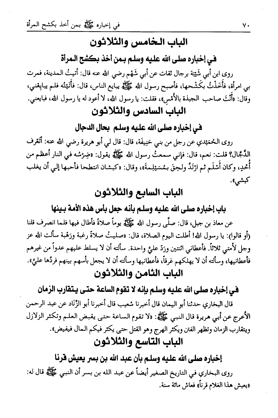 الباب الخامس والثلاثون في إخباره صلى الله عليه وسلم بمن أخذ بكشح المرأة