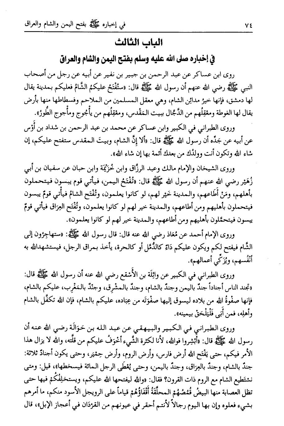 الباب الثالث في إخباره صلى الله عليه وسلم بفتح اليمن والشام والعراق