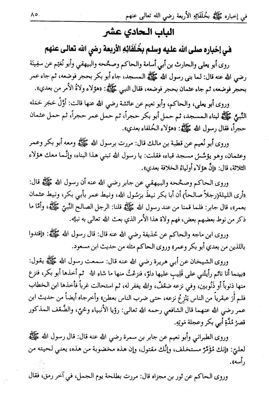 الباب الحادي عشر في إخباره صلى الله عليه وسلم بخلفائه الأربعة رضي الله تعالى عنهم