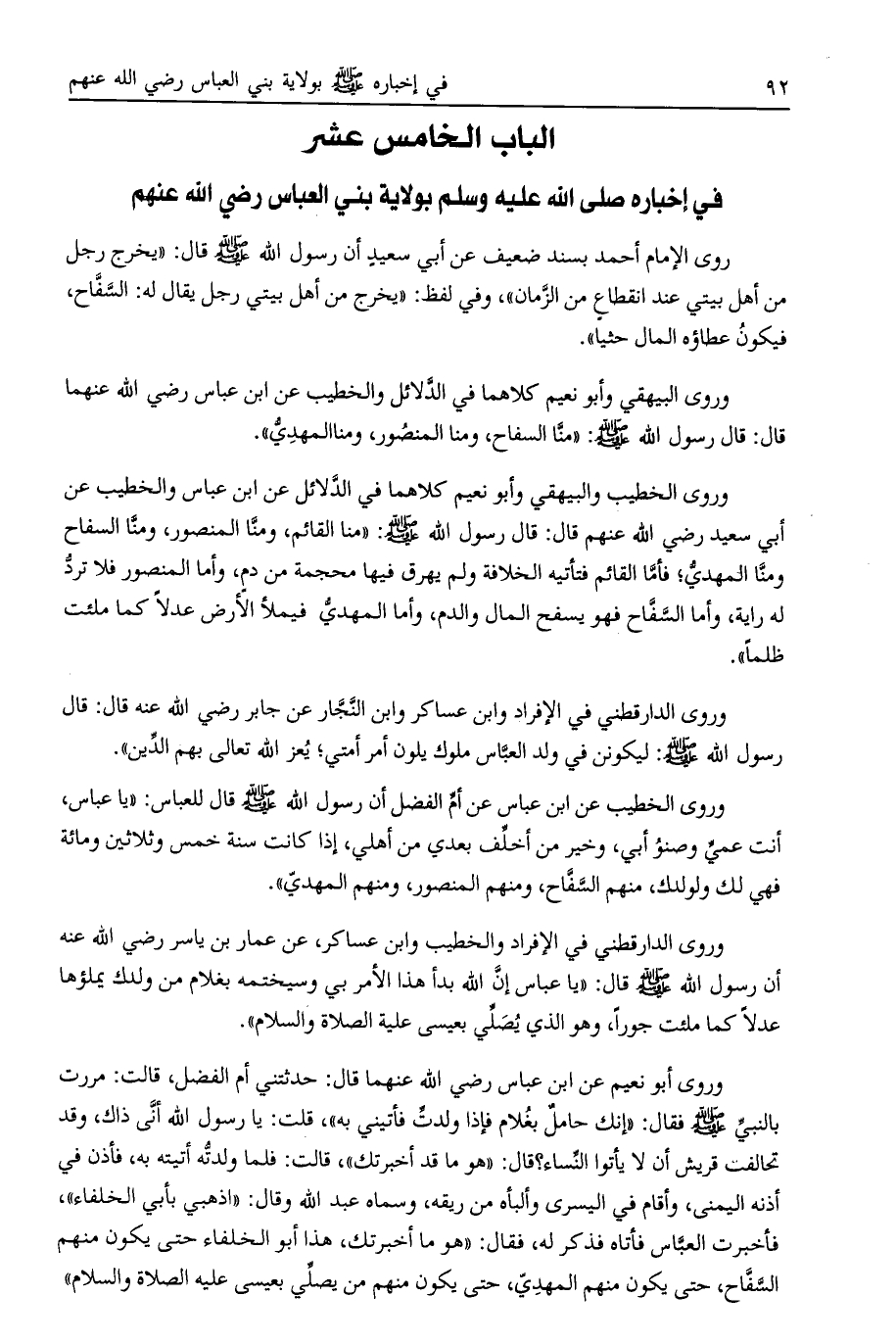 الباب الخامس عشر في إخباره صلى الله عليه وسلم بولاية بني العباس رضي الله عنهم