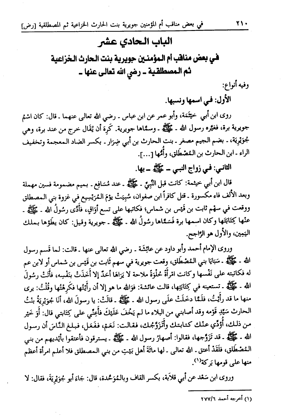 الباب الحادي عشر في بعض مناقب أم المؤمنين جويرية بنت الحارث الخزاعية ثم المصطلقية- رضي الله تعالى عنها-