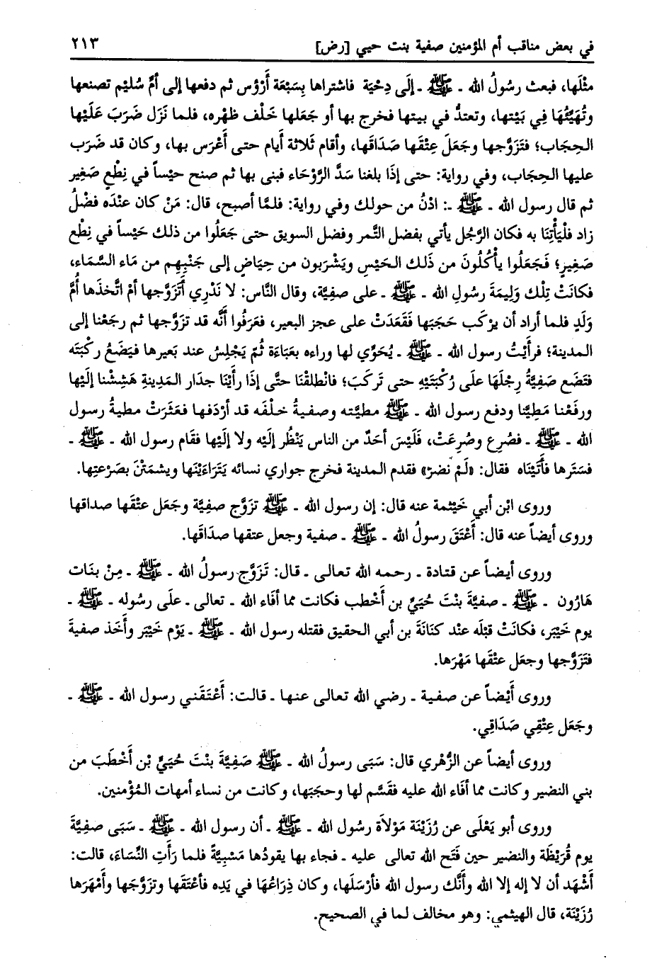 وروى أيضا عن صفية- رضي الله تعالى عنها- قالت: أعتقني رسول الله- صلى الله عليه وسلم- وجعل عتقي صداقي.