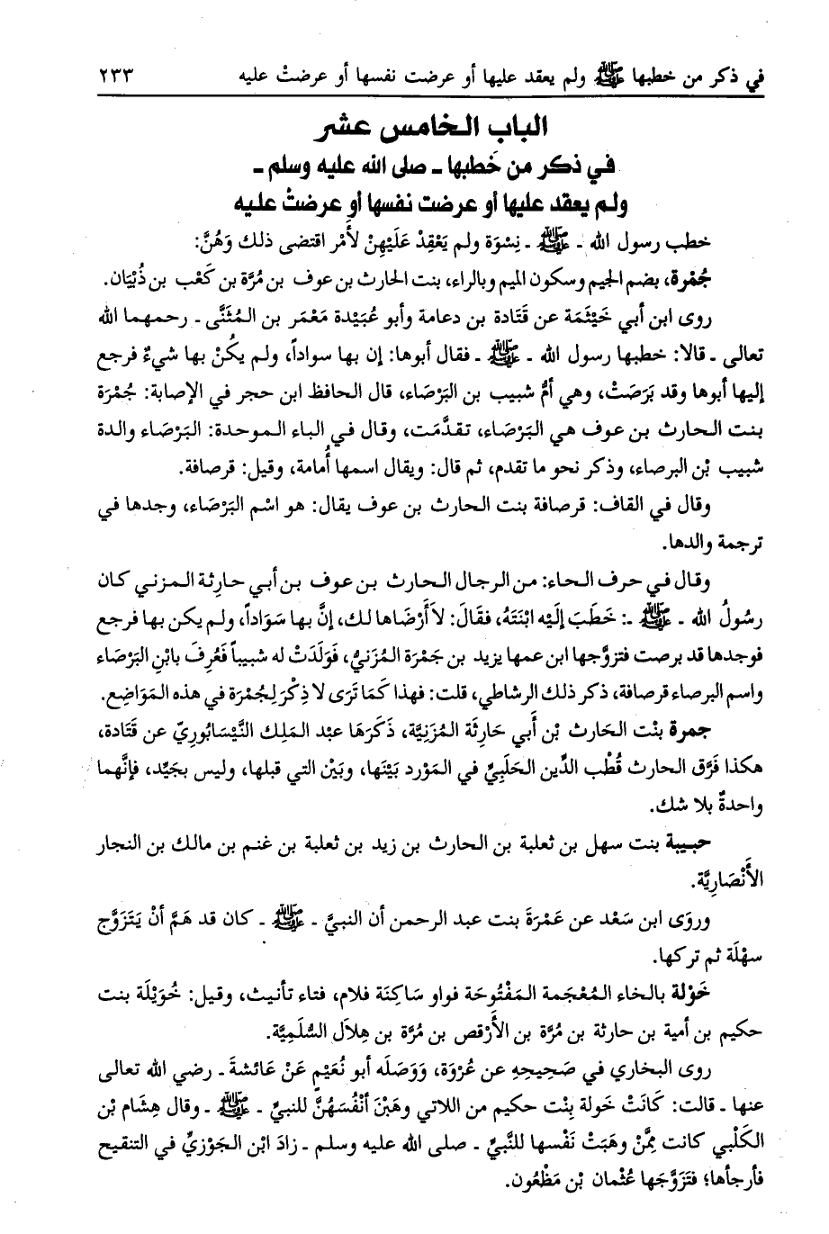 الباب الخامس عشر في ذكر من خطبها- صلى الله عليه وسلّم- ولم يعقد عليها أو عرضت نفسها أو عرضت عليه