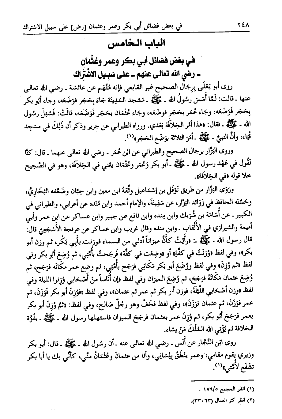 الباب الخامس في بعض فضائل أبي بكر وعمر وعثمان- رضي الله تعالى عنهم- على سبيل الاشتراك