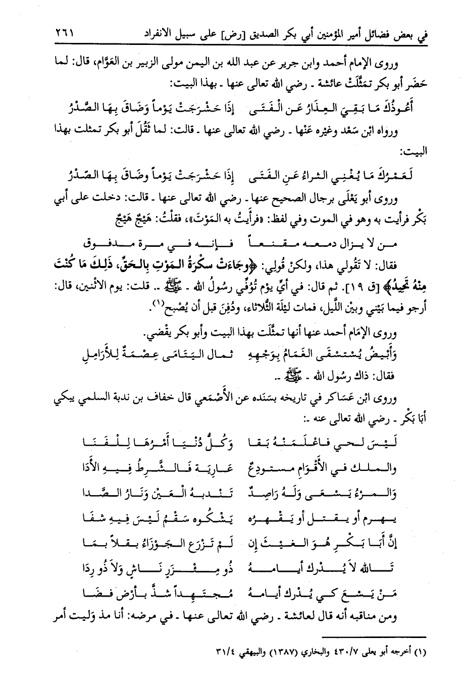 وروى ابن عساكر في تاريخه بسنده عن الأصمعي قال خفاف بن ندبة السلمي يبكي أبا بكر- رضي الله تعالى عنه-: