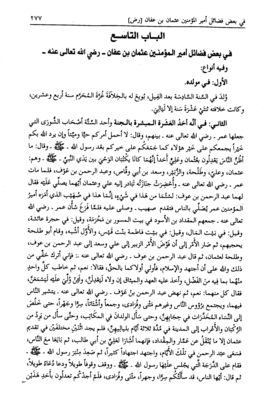 الباب التاسع في بعض فضائل أمير المؤمنين عثمان بن عفان- رضي الله تعالى عنه-