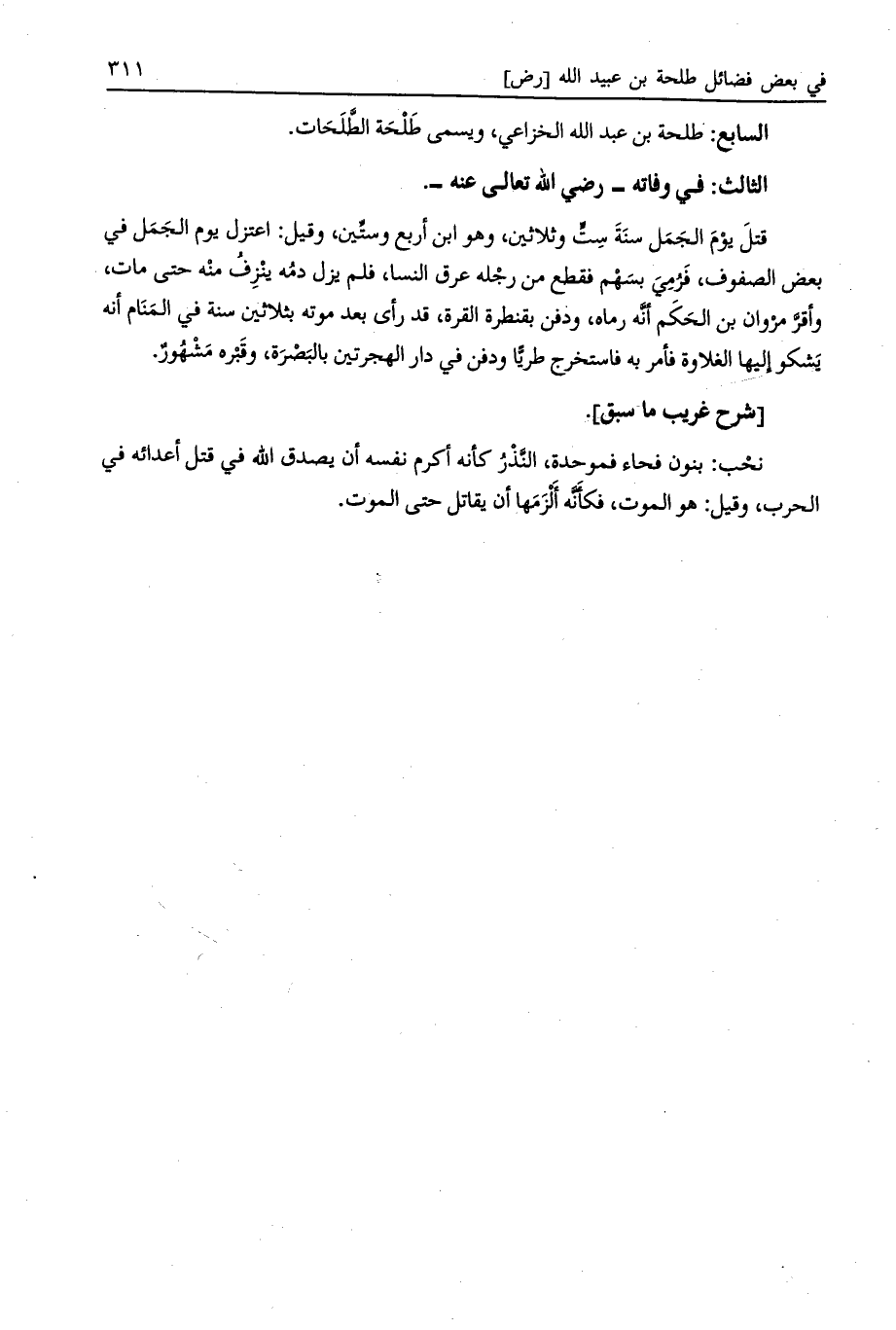 نحب: بنون فحاء فموحدة، النّذر كأنه أكرم نفسه أن يصدق الله في قتل أعدائه في الحرب، وقيل: هو الموت، فكأنّه الزمها أن يقاتل حتى الموت.