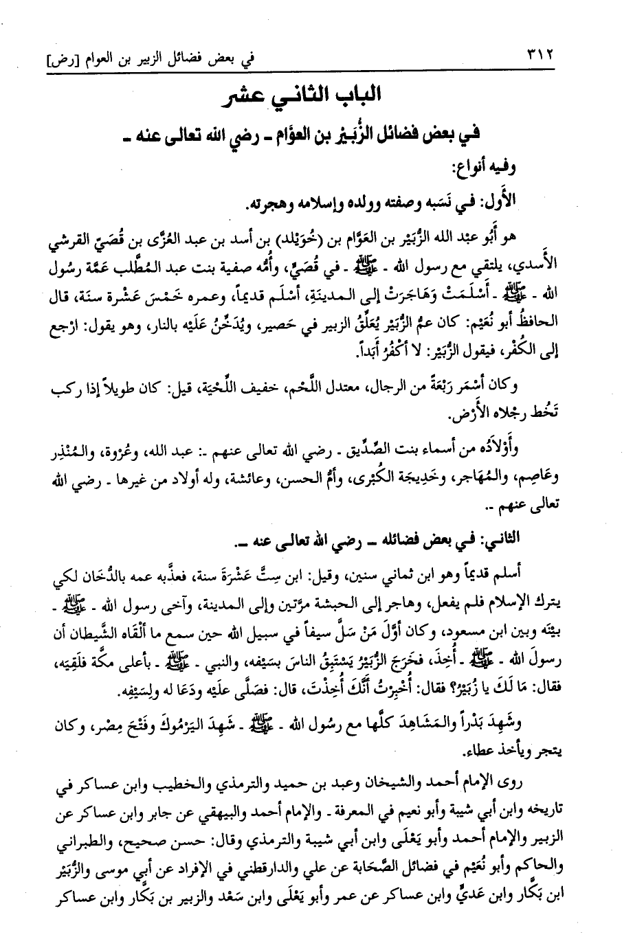 الباب الثاني عشر في بعض فضائل الزبير بن العوام- رضي الله تعالى عنه-