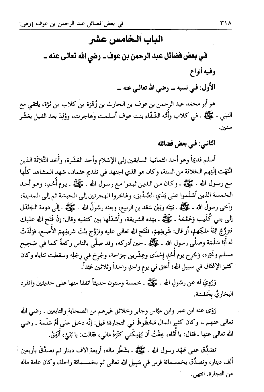 الباب الخامس عشر في بعض فضائل عبد الرحمن بن عوف- رضي الله تعالى عنه-