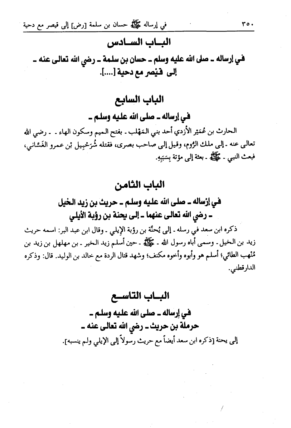 الباب الثامن في إرساله- صلّى الله عليه وسلّم- حريث بن زيد الخيل- رضي الله تعالى عنهما- إلى يحنة بن رؤبة الأيلي