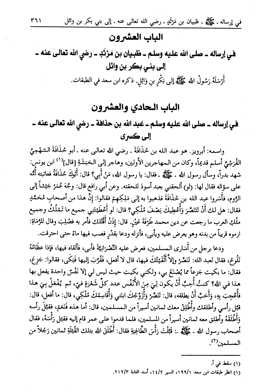[ (2) ] انظر طبقات ابن سعد 1/ 199، السير 2/ 14، أسد الغابة 3/ 212.